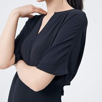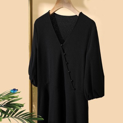 Black chiffon dress with button design, Chinese classical style elegant and cool short dress