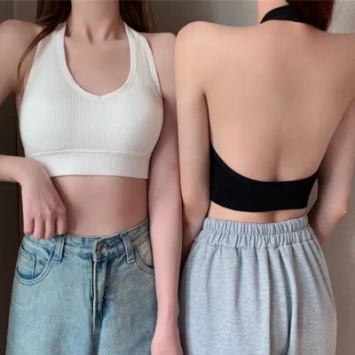 Fashion Sexy Halter Backless Bra Camisole for Women Wire Free Sport Bra Top