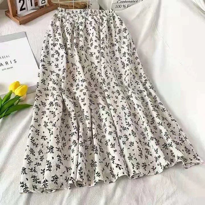 Women's Long Skirt Summer New Small Skirt High Waist Retro Floral A-line Skirt