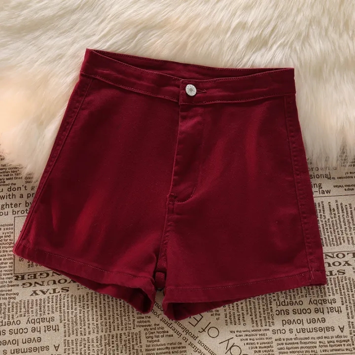 Denim Shorts Women's Summer Slim Fit Slim Looking Red Hip Covered Hot Pants
