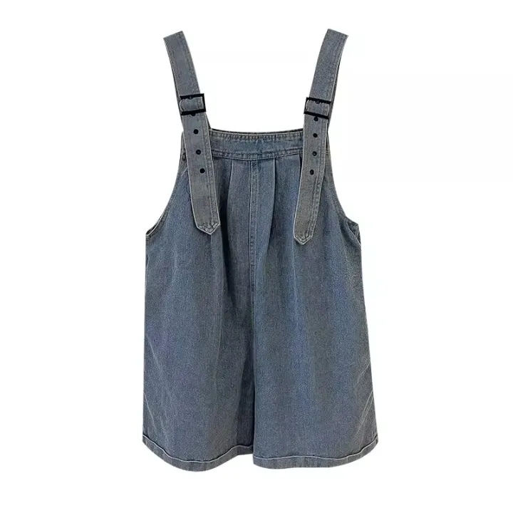 Denim Suspenders Women's Chubby Girl Short Loose Youthful-Looking Wide Leg Shorts Tide
