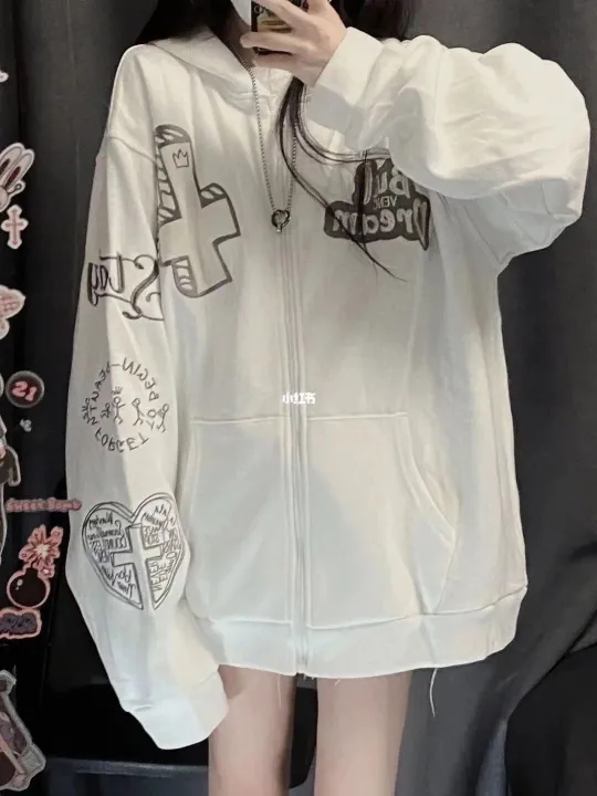 Hiphop Hooded Cardigan Sweater Women's Loose Oversize Couple Wear Outwear Fashion
